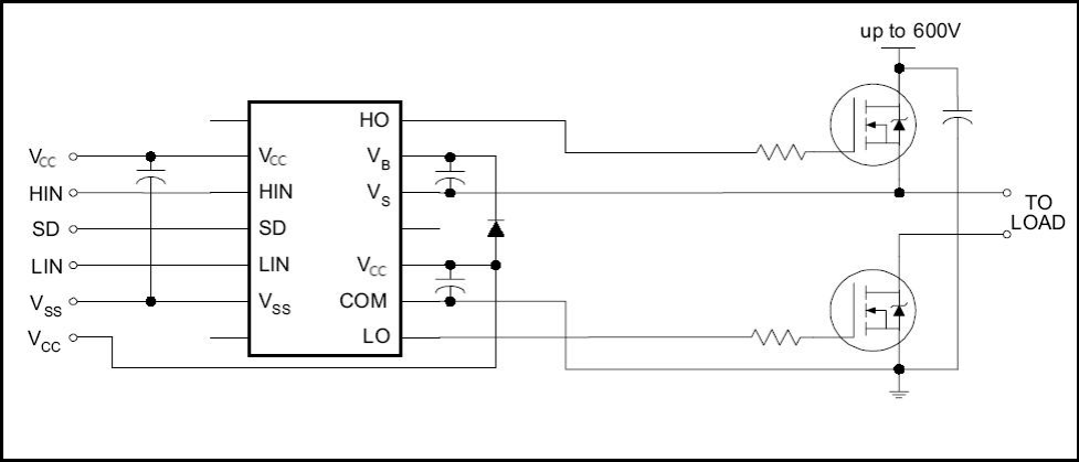 •主要特點(diǎn):浮動通道設(shè)計(jì)用于引導(dǎo)操作;完全工作到+600V;容忍負(fù)瞬態(tài)電壓v /dt免疫;柵極驅(qū)動供電范圍從10到20V;兩個(gè)通道都有欠壓鎖定;3.3V邏輯兼容;3.3V到20V的獨(dú)立邏輯供電范圍;邏輯與電源接地+5V偏移