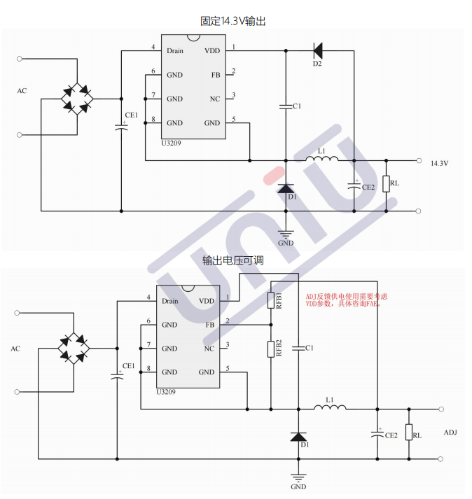 • 默認14.3V輸出(FB腳懸空)
