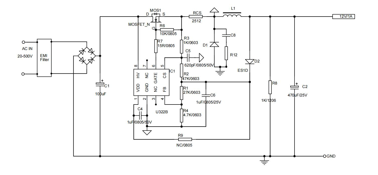 ● 集成700V 高壓啟動電路 ● 多模式控制、無異音工作 ● 支持降壓和升降壓拓撲 ● 默認12.5V 輸出(FB 腳懸空) ● 待機功耗低于 50mW ● 良好的線性調整率和負載調整率 ● 集成軟啟動電路 ● 內部保護功能: > 過載保護 (OLP) > 逐周期電流限制 (OCP) > 輸出過壓保護 (OVP) > VDD 過壓、欠壓和電壓箝位保護
