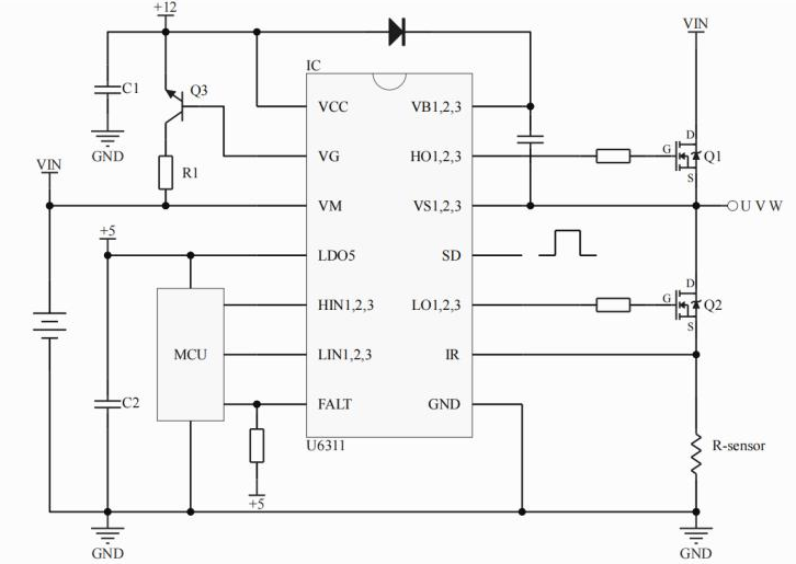 •主要特點(diǎn):懸浮絕對(duì)電壓: 70V;VM電壓范圍:5.0-70.0V; U6311 集成比較器(基準(zhǔn) 200mV);兼容3.3/5V 輸入邏輯;驅(qū)動(dòng)電流:+1.5A/-1.8A(typ.);死區(qū)時(shí)間: 250ns (typ.);集成VCC和VBS欠壓保護(hù);集成12V LDO控制電路;集成5.0V LDO;5V LDO集成輸出短路保護(hù);過流檢測(cè)(U6311);負(fù)瞬態(tài)電壓承受能力;集成共模噪音消除電路;CPC24、SSOP24、QFN28 封裝